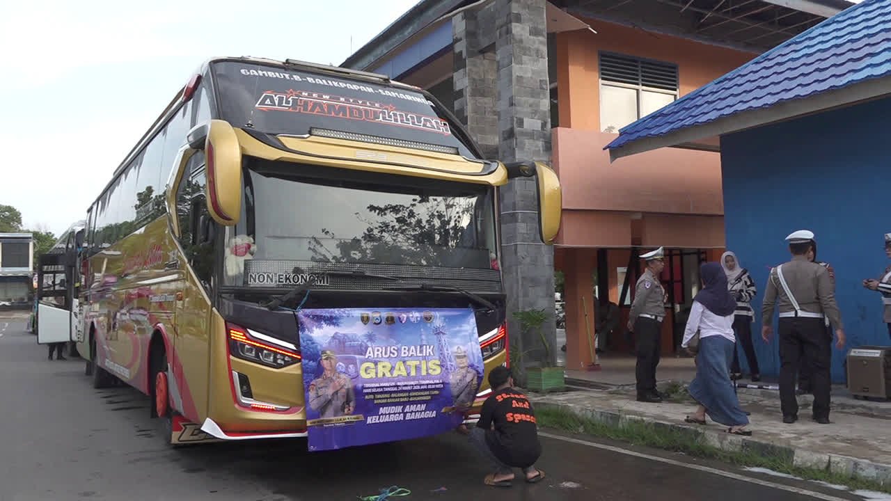 “Kami dari Polres Tabalong baru saja melepas arus balik gratis tujuan Pal 6 Terminal Banjarmasin. Untuk jumlah penumpang arus balik gratis tadi sebanyak kurang lebih 40 orang dengan menggunakan bus Pulau Indah, kemudian ada juga menyiapkan valet and ride yang membawa kendaraan roda dua milik penumpang arus balik gratis untuk sampai ke Terminal Banjarmasin di Pal 6,” ujar AKP Oki Hermawan, Kasatlantas Polres Tabalong.