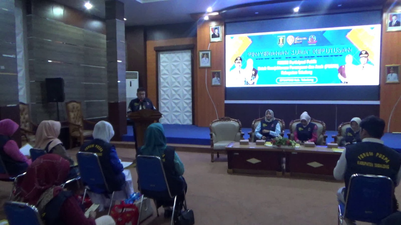 Kepala DP3AP2KB Tabalong, Achmad Rahadian Noor sekaligus sebagai penanggung jawab Forum Puspa Tabalong 2025-2030 menyerahkan surat Keputusan Kepengurusan Forum Partisipasi Publik untuk Kesejahteraan Perempuan dan Anak atau Puspa Kabupaten Tabalong Periode 2025-2030, pada 5 Desember 2025, di Gedung Informasi Tanjung.