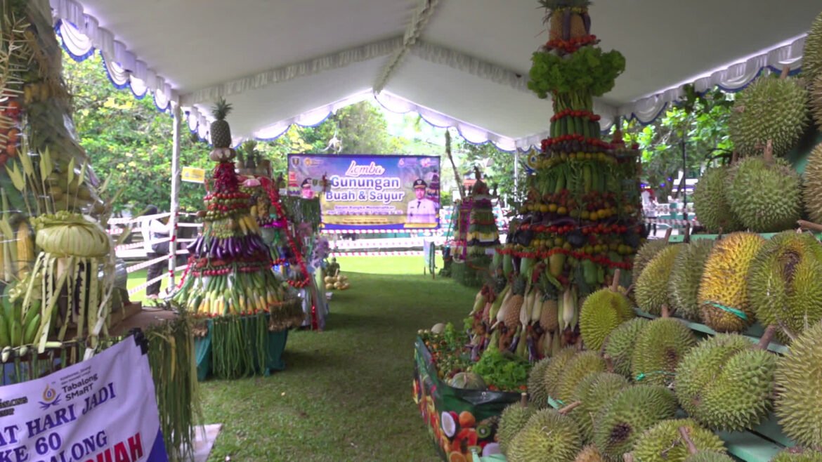 Dinas Ketahanan Pangan, Perikanan, Tanaman Pangan Dan Hortikultura Tabalong, menggelar Lomba Gunungan Buah dan Sayur, dalam rangka memeriahkan Hari Jadi Kabupaten Tabalong Ke-60. Gunungan tersebut Dipamerkan di Area Pendopo Bersinar Pembataan, pada puncak Peringan Hari Jadi Tabalong Senin tadi.