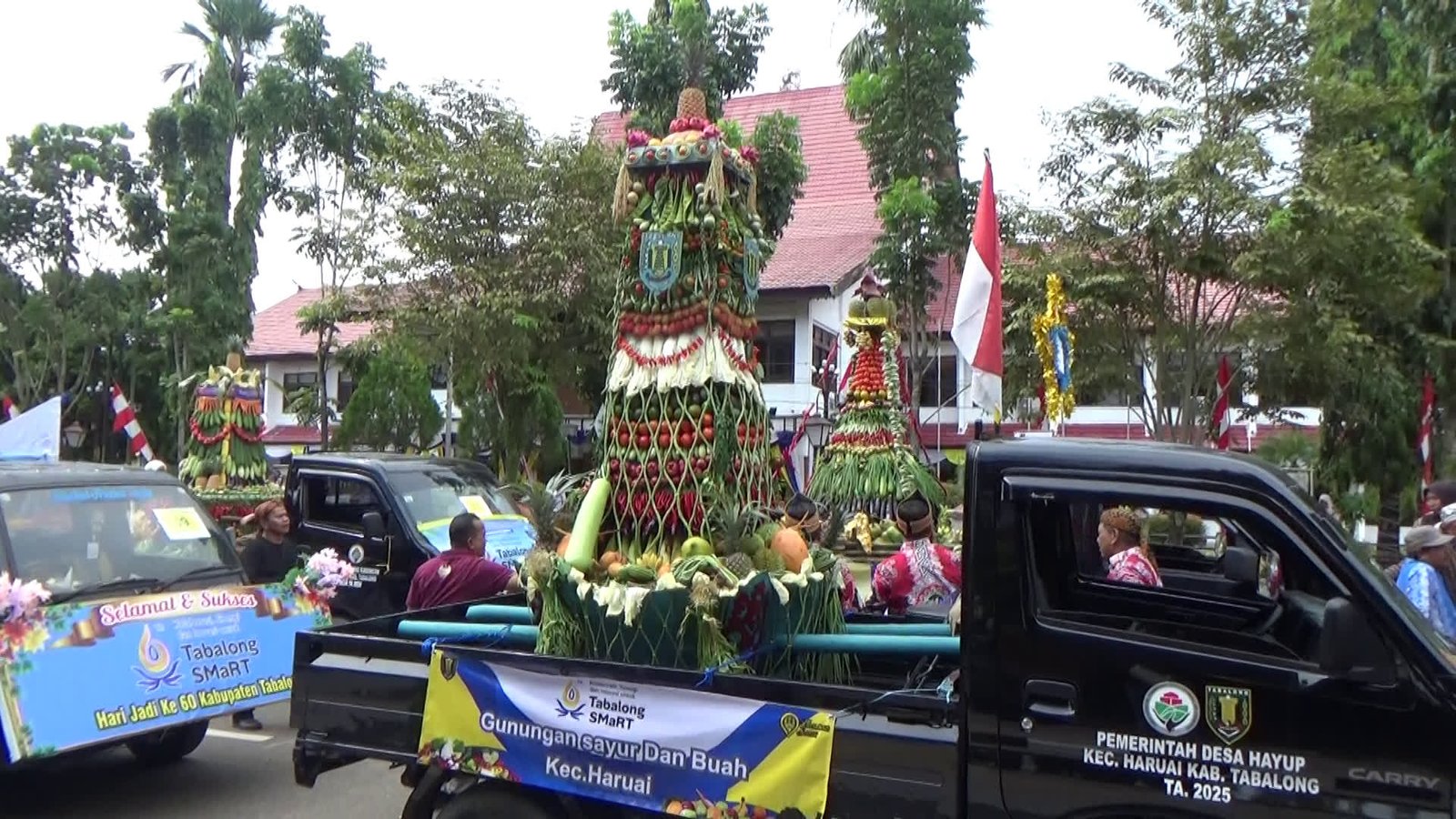 Dalam rangka Memeriahkan Hari Jadi Ke-60 Kabupaten Tabalong, Dinas Ketahanan Pangan, Perikanan, Tanaman Pangan dan Hortikultura Kabupaten Tabalong, menggelar Karnaval Gunungan Sayur Dan Buah. Karnaval dilaksanakan pada Minggu 7 Desember 2025, dari depan Kantor Bupati Tabalong menuju Pendopo Bersinar Pembataan.