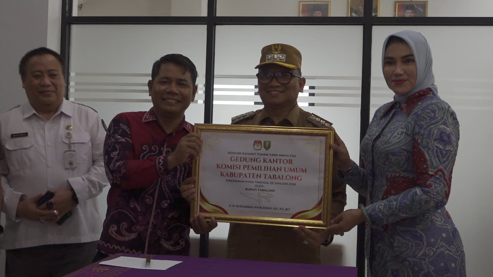 Peresmian kantor baru Komisi Pemilihan Umum atau KPU Tabalong ditandai dengan penandatanganan oleh Bupati Tabalong, Muhammad Noor Rifani, serta pemotongan pita oleh Ketua KPU Kalimantan Selatan, Andi Tenri Sompa. Peresmian ini dilaksanakan di Kantor KPU Tabalong yang terletak di Jalan Tanjung Selatan pada 26 Januari 2026.