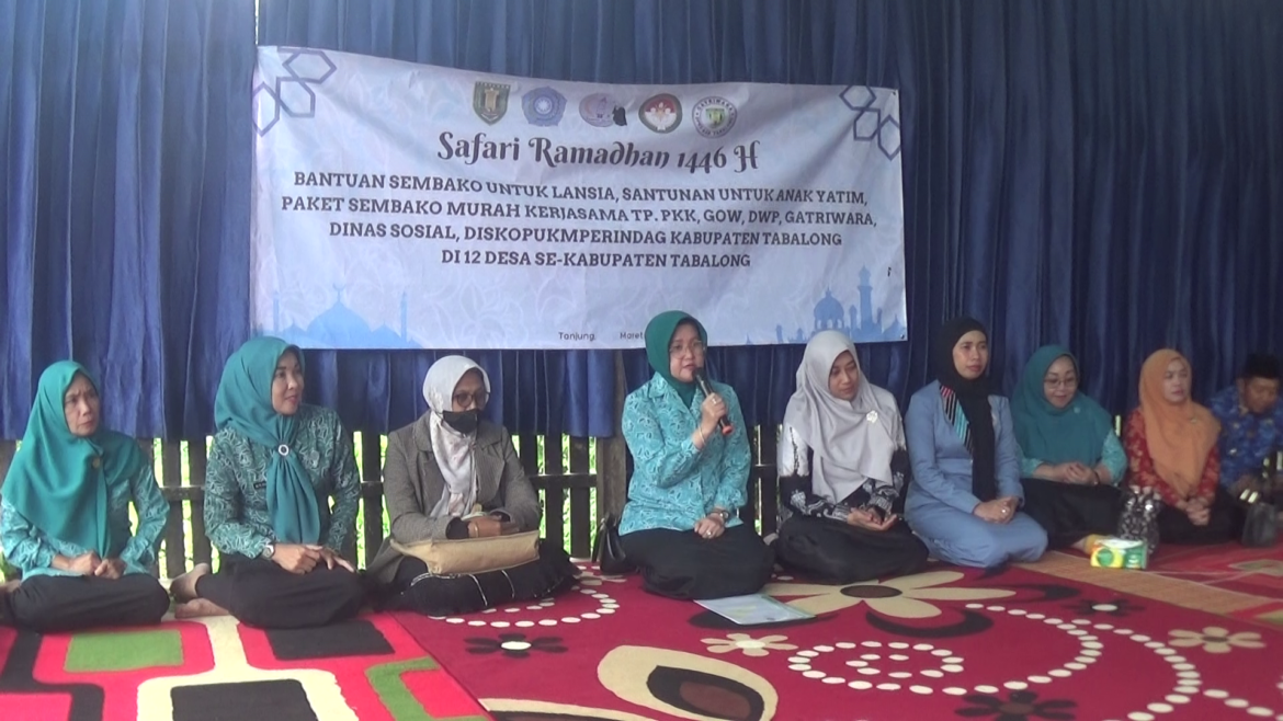Tim Penggerak PKK bersama dengan Gabungan Organisasi Wanita (GOW), Dharma Wanita Persatuan (DWP), dan Gabungan Istri Wakil Rakyat (Gatriwara) melakukan kegiatan Safari Ramadan di Desa Harus, Kecamatan Muara Harus, Senin, 17 Maret 2025.