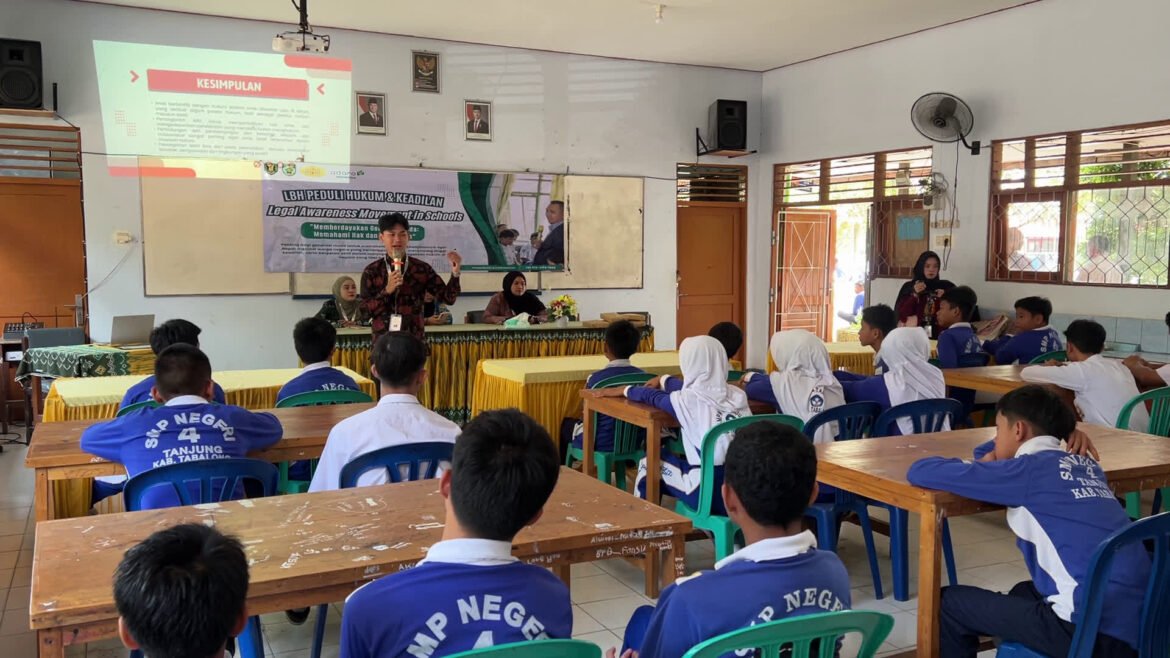 LBH Peduli Hukum dan Keadilan menggelar Sosialisasi Pemahaman Hukum bagi Siswa SMP Negeri 4 Tanjung pada 11 Desember 2025. Dalam Sosialisasi tersebut, para Peserta dibekali pengetahuan terkait aturan Hukum di Sekolah maupun Masyarakat, termasuk Edukasi Perundungan untuk membentuk Siswa yang sadar konsekuensi Hukum.