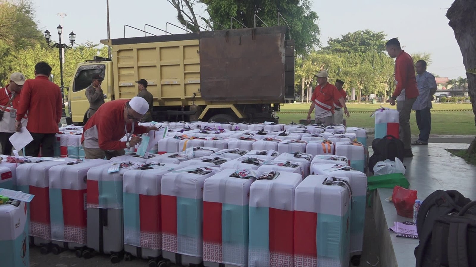 Menjelang keberangkatan ibadah haji tahun 2026, jemaah haji Kabupaten Tabalong mulai mengumpulkan koper besar yang akan dibawa ke Tanah Suci. Pengumpulan dilakukan sejak Minggu pagi, 26 April 2026, di halaman Pendopo Bersinar Pembataan.