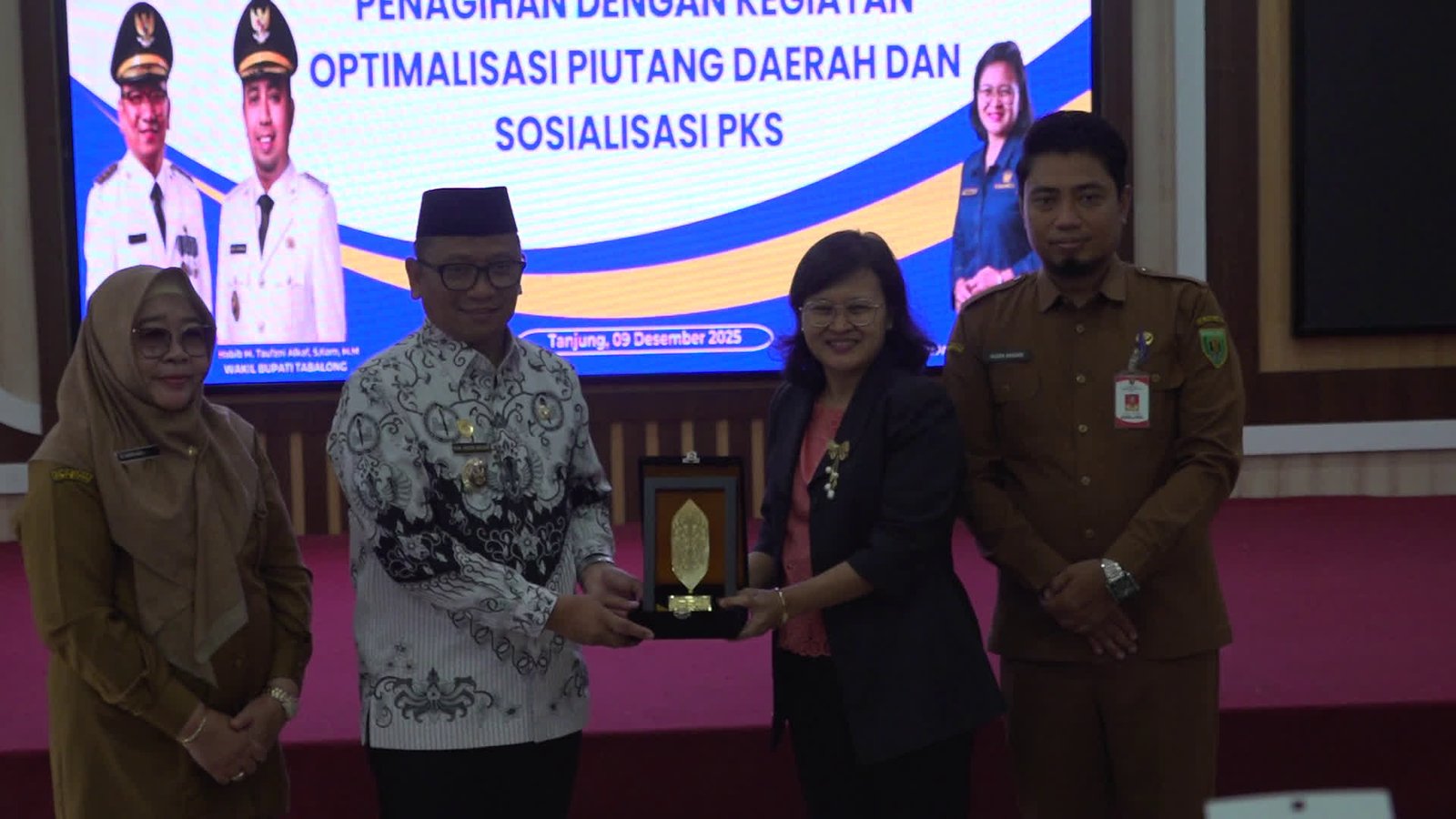 Pemerintah Kabupaten Tabalong bekerjasama dengan Direktorat Jendral Kekayaan Negara (DJKN), terkait penagihan dengan Optimalisasi Piutang Daerah Serta Sosialisasi PKS. Kerjasama ditandatangani Badan Pengelola Keuangan dan Aset Daerah dan DJKN pada Selasa 9 Desember 2025, di balai Rakyat Dandung Sucrowardi Komplek Pendopo Bersinar Pembataan.