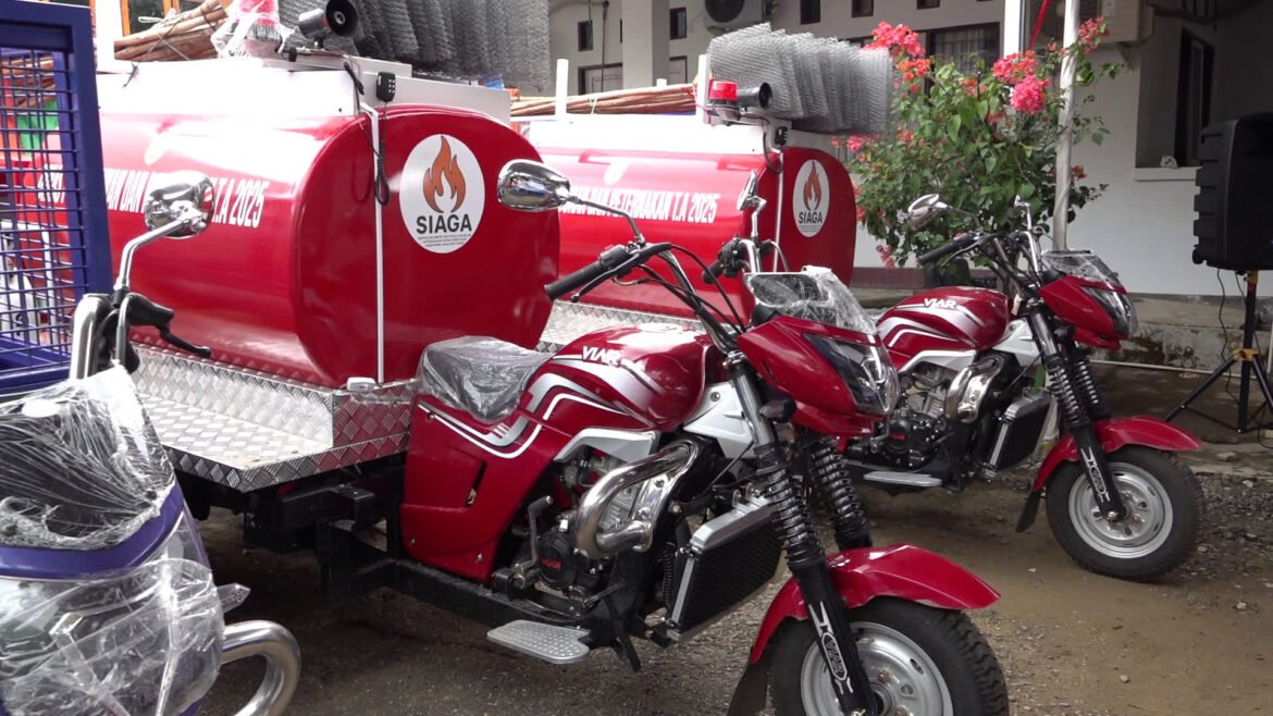 Bidang Pengendalian dan Penanggulangan Disbunnak Tabalong memberikan bantuan 2 unit Roda 3 Tangki Pemadam Kebakaran dan 40 Buah Kopyok Api, kepada 2 Kelompok Tani Peduli Api di Desa Suriyan Kecamatan Haruai dan Muang Kecamatan Jaro.