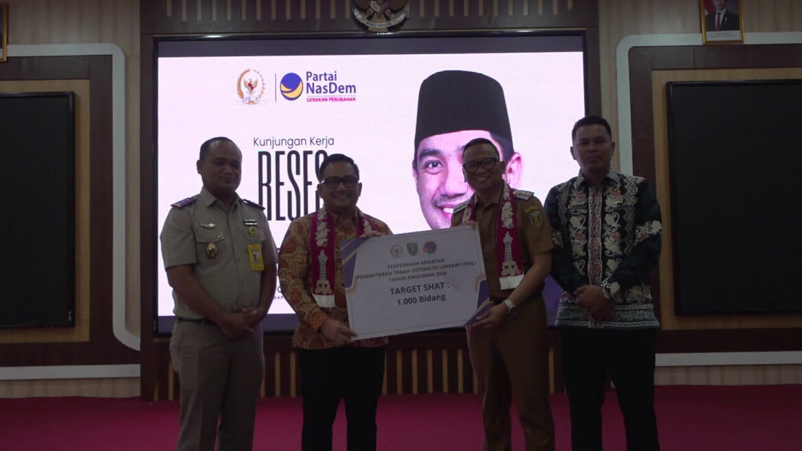 Bantuan pendaftaran tanah sistematis lengkap PTSL diserahkan secara Simbolis oleh Ketua Komisi 2 DPR RI Rifqynizamy Karsayuda dalam kunjungan kerjanya di Kabupaten Tabalong pada Selasa 16 Desember 2025 .