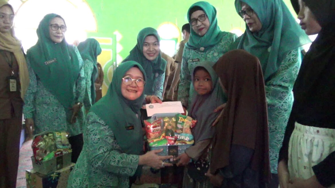 Tim Penggerak PKK Kabupaten Tabalong bersama Gabungan Organisasi Wanita GOW, Dharma Wanita Persatuan DWP, serta Gabungan Istri Wakil Rakyat Gatriwara Kabupaten Tabalong menyerahkan santunan kepada 40 anak yatim di Kecamatan Jaro. Penyerahan santunan dilakukan pada kegiatan Safari Ramadan Tim Penggerak PKK Tabalong yang digelar di Kantor Desa Solan, Kecamatan Jaro, Senin 23 Februari 2026.